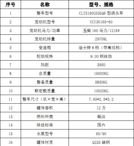 1、整車(chē)型號(hào): CLT5160GSSEQ6型灑水車(chē)